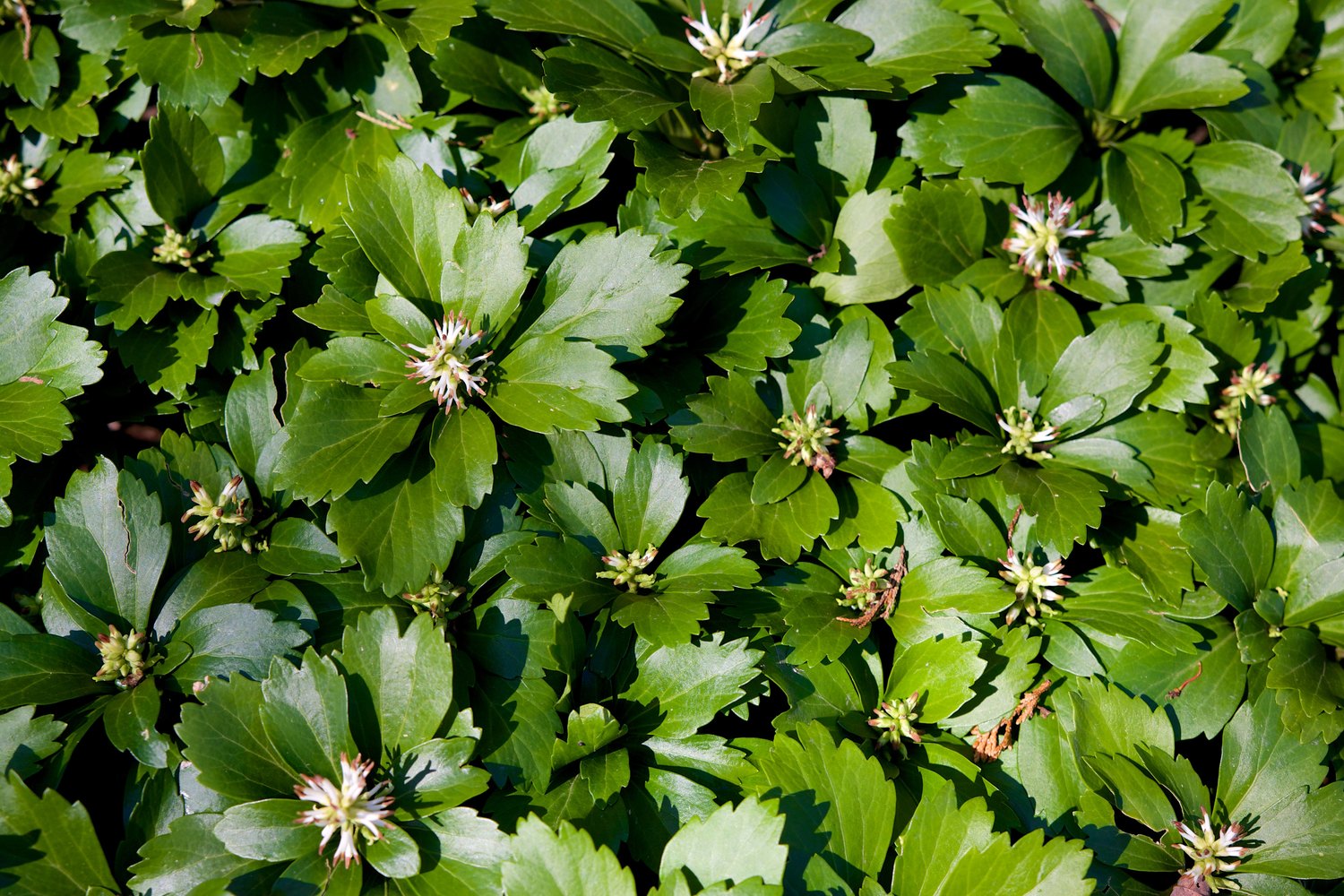 Part of the Japanese Spurges family. Japanese Spurges are evergreen all year and self-sustaining. Common Pachysandra is the Pachysandra that most people will have. The other varieties of Pachysandra are mutated from Common Pachysandra. This plant does very well in shaded areas and will eliminate lawn work from your busy schedule as it requires hardly any maintenance. It has fragrant white flowers that appear briefly in April and are followed by a second-story layering of fresh, spring-green leaves.