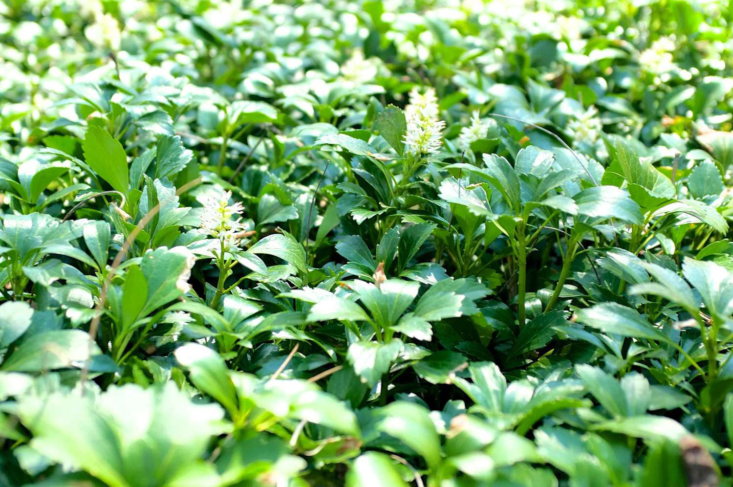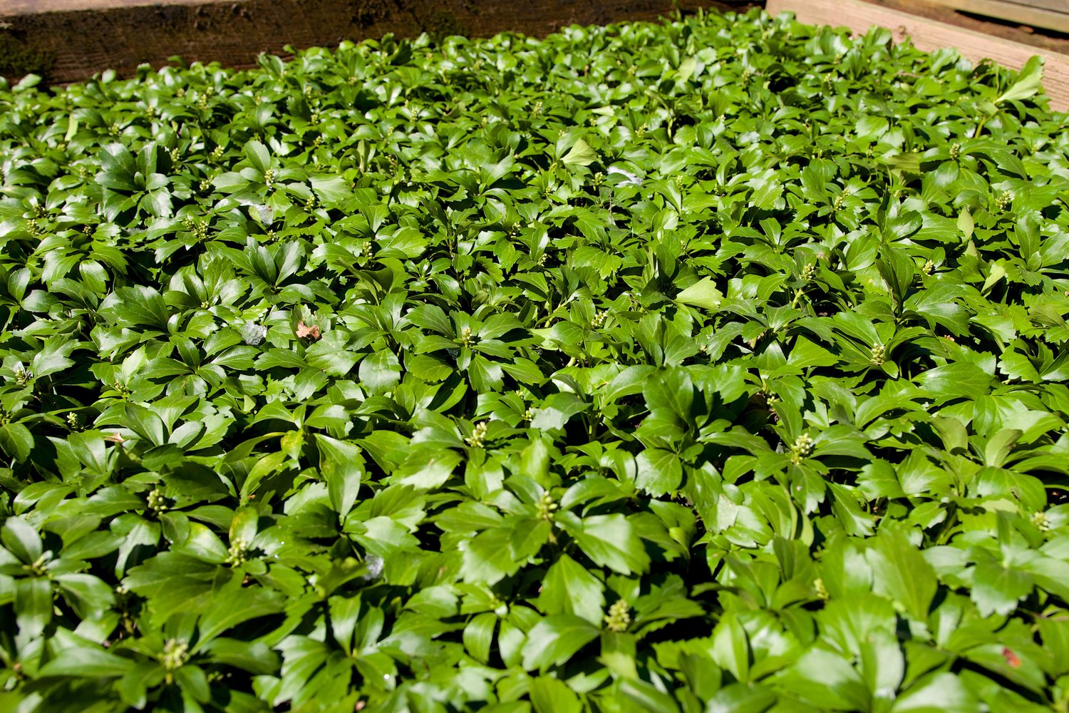 Once established, a Pachysandra planting will eliminate grass cutting and weeding. Your lawn work stops where this plant starts. This plant is used extensively under large spreading trees, back of buildings or in other situations too shady for grass to grow. It is self-sustaining and always looks good. It is an excellent ground cover for problem areas as it grows in just about any soil and is one of the few ground covers that will grow under pine trees.
